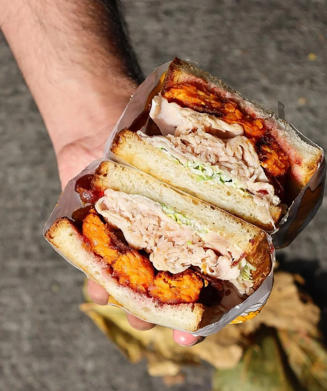 Experience the warmth of the holidays with every bite of the BPC Turkey Gobbler, a seasonal masterpiece crafted to perfection for turkey lovers and comfort food fans alike. Each bite delivers the perfect blend of savory and sweet, featuring tender smoked turkey layered with creamy mayonnaise and tangy cranberry sauce on soft, toasted bread.