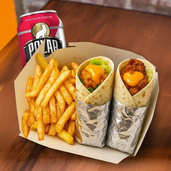 The Two Chicken Wrap Combo by Holy Burger is made for sharing or doubling up on flavor. Enjoy two wraps filled with crispy or spicy crispy chicken, wrapped warm and packed with bold taste in every bite.